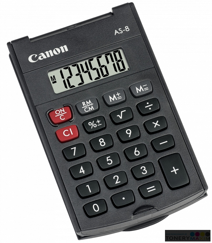 8-miestna vrecková kalkulačka s oblúkovým dizajnom a odolným krytom s 360-stupňovým vyklápaním smerom nahor. Táto kompaktná a štýlová 8-miestna vrecková kalkulačka nesúca označenie AS-8 je charakteristická inteligentným oblúkovým dizajnom a odolným krytom, ktorý sa vyklápa smerom nahor v rozsahu 360 stupňov. Vďaka uvedeným vlastnostiam je vhodná na použitie v kancelárii i na cestách. Horné a spodné puzdro, ako aj pevný kryt sú vyrobené z recyklovaných materiálov Canon. Veľký LCD displej. Rozmery (d x š x h) 97 x 60 x 11,4 mm. Hmotnosť 41 g. Farba tmavo sivá.