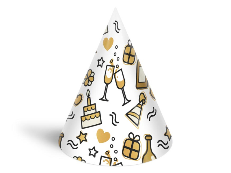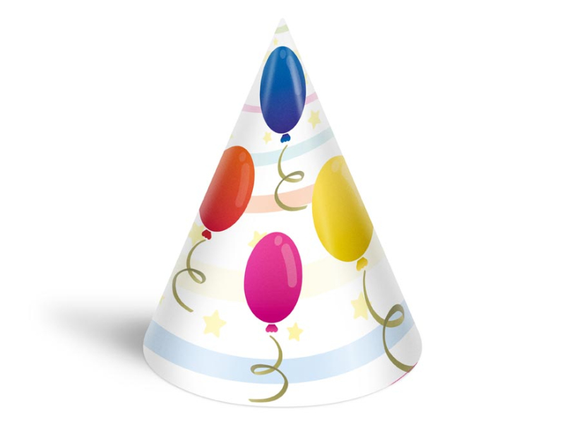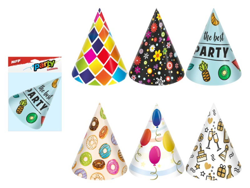 Narodeninový papierový párty klobúčik. Karnevalový klobúčik veľmi dobre drží na hlave vďaka klobúkovej gumičke, ktorá sa dáva pod bradu. Urobte radosť oslávencovi a usporiadajte veľkú párty. Nezabudnite si kúpiť aj trúbky a trumpety. BALENIE OBSAHUJE: - 6 ks farebných klobúčikov s rôznymi motívmi Výška klobúčikov: 160 mm Obvod klobúčika: 320 mm Dĺžka gumičky: 360 mm VAROVANIE: Nevhodné pre deti do 3 rokov. Nebezpečenstvo vdýchnutia a prehltnutia malých častí. Balené vo vrecku so závesom. Uvedená cena je za 1 balenie po 6 ks.