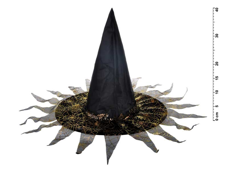 Čarodejnícky klobúk sa hodí ako doplnok pre správnu čarodejnicu. Zmeňte svoju ratolesť v okamihu na čarodejníka alebo čarodejnicu vďaka štýlovému klobúku. Ak sa chystáte na party, upaľovanie čarodejníc alebo na halloweenský večierok, tento klobúk nesmie chýbať vo vašom šatníku. Farba: čierno-zlatá Rozmery: Šírka: 40 cm Výška: 36 cm Uvedená cena je za 1 ks.