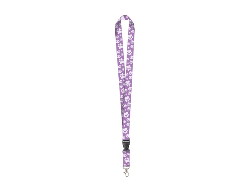 Klíčenka na krk - Paws. Jemný fialový design s bílými stopami tlapek dodává klíčence hravý a přátelský vzhled. Klíčenka je skvělá pro bezpečné nošení klíčů, ID karet nebo malého USB flash disku. Rychloupínací přezka umožňuje snadné oddělení klíčů nebo karty bez nutnosti sundávat celou klíčenku z krku. Pevná karabina zajišťuje bezpečné uchycení klíčů a dalších drobností. Vyrobena z lehkého, příjemného materiálu, který poskytuje pohodlí i při celodenním nošení. Motiv: tlapky Uvedená cena je za 1 ks.