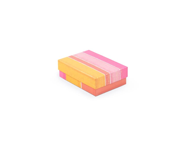 Celoročná darčeková krabica s rozmermi 17 x 12 x 5,5 cm NÁHODNÝ MIX Darčeková krabica zdobená jemnými pruhmi v elegantných pastelových farbách s trblietavými detailmi. Je ideálny na balenie širokej škály darčekov, od drobných šperkov po väčšie predmety. Vhodná pre oslavy, ako sú narodeniny, svadby, výročia, alebo iné významné udalosti. Pri vložení jednej krabičky do košíka sa automaticky pridá celá sada, ktorá zahŕňa krabičky rovnakého dizajnu, ale rôznych veľkostí. Táto variabilita zaručuje, že budete mať krabičky vhodné na rôzne príležitosti a typy darčekov. Materiál: 1,5 mm kartón, potiahnutý papierom s potlačou Set obsahuje tieto krabice: 5371184 Krabica darčeková D-L005-A 14,5x10x5 cm 5371185 Krabica darčeková D-L005-B 17x12x5,5 cm 5371186 Krabica darčeková D-L005-C 19x13,5x6 cm 5371187 Krabica darčeková D-L005-D 22x16x6,5 cm 5371188 Krabica darčeková D-L005-E 24,5x17,5x7 cm 5371189 Krabica darčeková D-L005-F 27,5x19,5x7,5 cm 5371190 Krabica darčeková D-L005-G 29x21x8 cm 5371191 Krabica darčeková D-L005-H 33x23,5x9 cm 5371192 Krabica darčeková D-L005-I 35x25x10 cm 5371193 Krabica darčeková D-L005-J 37x27x11 cm Uvedená cena je za 1 ks.