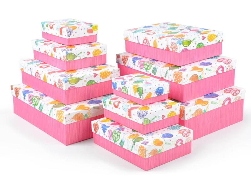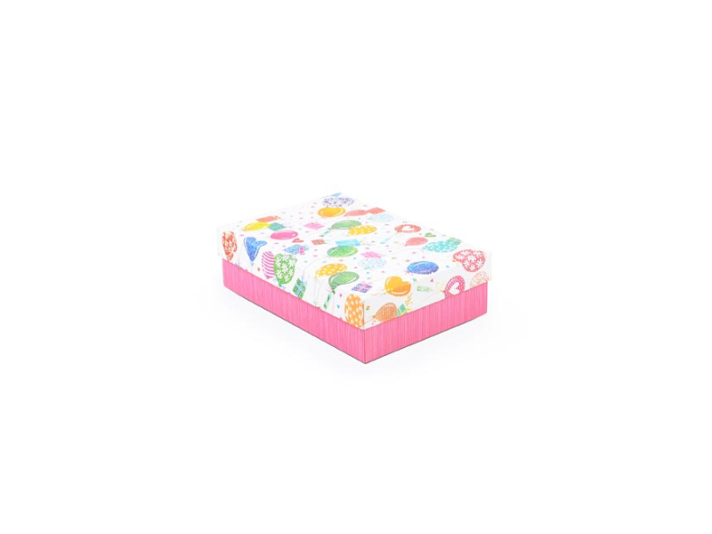Celoročná darčeková krabica s rozmermi 24,5 x 17,5 x 7 cm Darčeková krabica v živých veselých farbách, kde základom je sýto ružová spodná časť a farebne zdobené veko s motívmi balónikov, darčekov, srdiečok a ďalších slávnostných symbolov. Je ideálny pre oslavy ako narodeniny, detské párty, sviatky alebo akúkoľvek inú príležitosť. Vďaka pevnému materiálu a atraktívnemu dizajnu môže krabica slúžiť nielen ako obal na darček, ale aj ako praktický úložný box na neskoršie použitie, napríklad na hračky, doplnky alebo pamätné predmety. Pri vložení jednej krabičky do košíka sa automaticky pridá celá sada, ktorá zahŕňa krabičky rovnakého dizajnu, ale rôznych veľkostí. Táto variabilita zaručuje, že budete mať krabičky vhodné na rôzne príležitosti a typy darčekov. Materiál: 1,5 mm kartón, potiahnutý papierom s potlačou Set obsahuje tieto krabice: 5371204 Krabica darčeková D-L007-A 14,5x10x5 cm 5371205 Krabica darčeková D-L007-B 17x12x5, 5 cm 5371206 Krabica darčeková D-L007-C 19x13,5x6 cm 5371207 Krabica darčeková D-L007-D 22x16x6, 5cm 5371208 Krabica darčeková D-L007-E 24,5x17,5x7 cm 5371209 Krabica darčeková D-L007-F 27,5x19,5x7,5 cm 5371210 Krabica darčeková D-L007-G 29x21x8 cm 5371211 Krabica darčeková D-L007-H 33x23,5x9 cm 5371212 Krabica darčeková D-L007-I 35x25x10 cm 5371213 Krabica darčeková D-L007-J 37x27x11 cm Uvedená cena je za 1 ks.