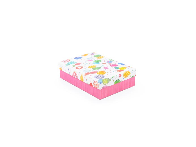 Celoročná darčeková krabica s rozmermi 27,5 x 19,5 x 7,5 cm Darčeková krabica v živých veselých farbách, kde základom je sýto ružová spodná časť a farebne zdobené veko s motívmi balónikov, darčekov, srdiečok a ďalších slávnostných symbolov. Je ideálny pre oslavy ako narodeniny, detské párty, sviatky alebo akúkoľvek inú príležitosť. Vďaka pevnému materiálu a atraktívnemu dizajnu môže krabica slúžiť nielen ako obal na darček, ale aj ako praktický úložný box na neskoršie použitie, napríklad na hračky, doplnky alebo pamätné predmety. Pri vložení jednej krabičky do košíka sa automaticky pridá celá sada, ktorá zahŕňa krabičky rovnakého dizajnu, ale rôznych veľkostí. Táto variabilita zaručuje, že budete mať krabičky vhodné na rôzne príležitosti a typy darčekov. Materiál: 1,5 mm kartón, potiahnutý papierom s potlačou Set obsahuje tieto krabice: 5371204 Krabica darčeková D-L007-A 14,5x10x5 cm 5371205 Krabica darčeková D-L007-B 17x12x5, 5 cm 5371206 Krabica darčeková D-L007-C 19x13,5x6 cm 5371207 Krabica darčeková D-L007-D 22x16x6, 5cm 5371208 Krabica darčeková D-L007-E 24,5x17,5x7 cm 5371209 Krabica darčeková D-L007-F 27,5x19,5x7,5 cm 5371210 Krabica darčeková D-L007-G 29x21x8 cm 5371211 Krabica darčeková D-L007-H 33x23,5x9 cm 5371212 Krabica darčeková D-L007-I 35x25x10 cm 5371213 Krabica darčeková D-L007-J 37x27x11 cm Uvedená cena je za 1 ks.