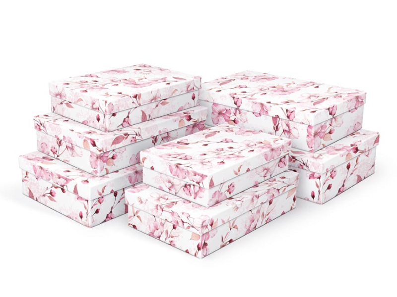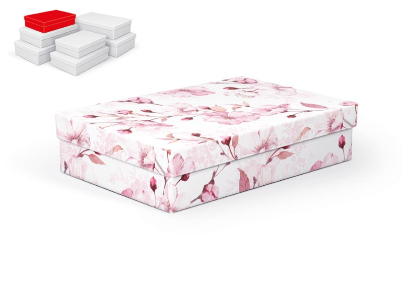 Celoročná darčeková krabička s rozmermi 26 x 17 x 6 cm Darčeková krabica s dizajnom čerešňových kvetov. Vhodná na slávnostné príležitosti, na zabalenie darčekov na oslavy, svadby alebo len tak, na uschovanie rôznych drobností. Dodávame iba v sete 7 darčekových krabičiek, ktoré sú v rovnakom dizajne, ale v rôznych veľkostiach. Pri vložení do košíka sa automaticky vložia aj ostatné krabičky, tak aby ste mali v košíku vždy celý, kompletný set. Uvedená cena je za 1 ks. Materiál: 1,5 mm kartón, potiahnutý luxusným papierom Súprava obsahuje tieto krabice: 5371061 Darčeková krabica A-C007-A 24x16x6 cm 5371062 Darčeková krabica A-C007-B 26x17x6 cm 5371063 Darčeková krabica A-C007-C 28x18x7 cm 5371064 Darčeková krabica A-C007-D 30x19x7 cm 5371065 Darčeková krabica A-C007-E 32x20x8 cm 5371066 Darčeková krabica A-C007-F 34x22x8 cm 5371067 Darčeková krabica A-C007-G 36x22x9 cm