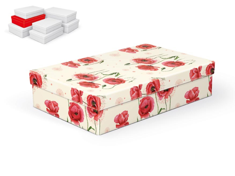 Celoročná darčeková krabička s rozmermi 30 x 19 x 7 cm NÁHODNÝ MIX MOTÍVOV Darčeková krabička s kvetinovým motívom. Vhodná na slávnostné príležitosti, na balenie darčekov na oslavy, svadby alebo len na uloženie rôznych drobností. Dodávame iba v sete 7 darčekových krabičiek, ktoré sú v rôznych dizajnoch a rôznych veľkostiach. Pri vložení do košíka sa automaticky vložia aj ostatné krabičky, tak aby ste mali v košíku vždy celý, kompletný set. Uvedená cena je za 1 ks. Materiál: 1,5 mm kartón, potiahnutý luxusným papierom Súprava obsahuje tieto krabice: 5371068 Darčeková krabica A-C008-A 24x16x6 cm 5371069 Darčeková krabica A-C008-B 26x17x6 cm 5371070 Darčeková krabica A-C008-C 28x18x7 cm 5371071 Darčeková krabica A-C008-D 30x19x7 cm 5371072 Darčeková krabica A-C008-E 32x20x8 cm 5371073 Darčeková krabica A-C008-F 34x22x8 cm 5371074 Darčeková krabica A-C008-G 36x22x9 cm