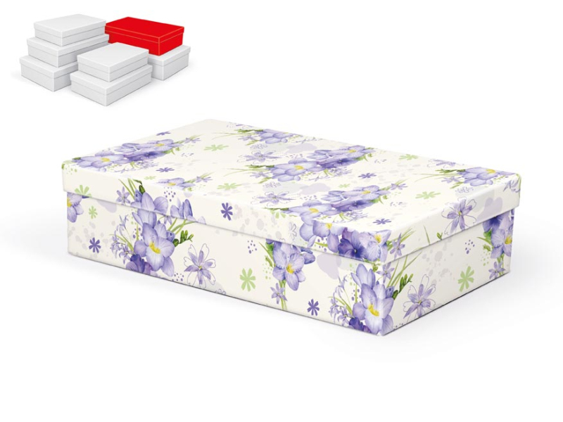 Celoročná darčeková krabička s rozmermi 32 x 20 x 8 cm NÁHODNÝ MIX MOTÍVOV Darčeková krabička s kvetinovým motívom. Vhodná na slávnostné príležitosti, na balenie darčekov na oslavy, svadby alebo len na uloženie rôznych drobností. Dodávame iba v sete 7 darčekových krabičiek, ktoré sú v rôznych dizajnoch a rôznych veľkostiach. Pri vložení do košíka sa automaticky vložia aj ostatné krabičky, tak aby ste mali v košíku vždy celý, kompletný set. Uvedená cena je za 1 ks. Materiál: 1,5 mm kartón, potiahnutý luxusným papierom Súprava obsahuje tieto krabice: 5371068 Darčeková krabica A-C008-A 24x16x6 cm 5371069 Darčeková krabica A-C008-B 26x17x6 cm 5371070 Darčeková krabica A-C008-C 28x18x7 cm 5371071 Darčeková krabica A-C008-D 30x19x7 cm 5371072 Darčeková krabica A-C008-E 32x20x8 cm 5371073 Darčeková krabica A-C008-F 34x22x8 cm 5371074 Darčeková krabica A-C008-G 36x22x9 cm