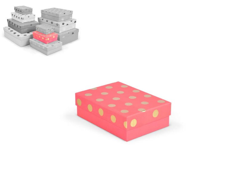 Celoročná darčeková krabička s rozmermi 19 x 13,5 x 6 cm NÁHODNÝ MIX Darčeková krabička v kombinácii farieb so zlatými bodkami. Vhodná na slávnostné príležitosti, dekoračné účely, balenie osobných darčekov alebo na uloženie rôznych drobností. Po pridaní jednej krabičky do košíka sa automaticky pridá celá súprava, ktorá obsahuje krabičky s rôznymi vzormi a veľkosťami. Táto variabilita Vám zaručuje, že máte k dispozícii krabičky vhodné na rôzne príležitosti a typy darčekov. Krabičky sú elegantne navrhnuté a navzájom ladia svojimi farbami a vzormi, čím vytvárajú harmonickú súpravu ideálnu na každú príležitosť. Materiál: 1,5 mm kartón, potiahnutý papierom s potlačou Súprava obsahuje tieto krabice: 5371115 Darčeková krabica D-L002-A 14,5x10x5cm 5371116 Darčeková krabica D-L002-B 17x12x5,5cm 5371117 Darčeková krabica D-L002-C 19x13,5x6cm 5371118 Darčeková krabica D-L002-D 22x16x6,5cm 5371119 Darčeková krabica D-L002-E 24,5x17,5x7cm 5371120 Darčeková krabica D-L002-F 27,5x19,5x7,5cm 5371121 Darčeková krabica D-L002-G 29x21x8cm 5371122 Darčeková krabica D-L002-H 33x23,5x9cm 5371123 Darčeková krabica D-L002-I 35x25x10cm 5371124 Darčeková krabica D-L002-J 37x27x11cm Uvedená cena je za 1 ks.