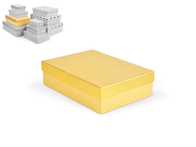 Celoročná darčeková krabička s rozmermi 29 x 21 x 8 cm NÁHODNÝ MIX Darčeková krabička v žltej farbe s rôznymi vzormi, ako sú bodky, pruhy alebo štruktúrovaný povrch. Vhodná na slávnostné príležitosti, dekoratívne účely, balenie osobných darčekov alebo na uloženie rôznych drobností. Po pridaní jednej krabičky do košíka sa automaticky pridá celá súprava, ktorá obsahuje krabičky s rôznymi vzormi a veľkosťami. Táto variabilita Vám zaručuje, že budete mať krabičky vhodné na rôzne príležitosti a typy darčekov. Krabičky sú elegantne navrhnuté a navzájom ladia svojimi farbami a vzormi, čím vytvárajú harmonickú súpravu ideálnu na každú príležitosť. Materiál: 1,5 mm kartón, potiahnutý papierom s potlačou Súprava obsahuje tieto krabice: 5371125 Darčeková krabica D-L003-A 14,5x10x5cm 5371126 Darčeková krabica D-L003-B 17x12x5,5cm 5371127 Darčeková krabica D-L003-C 19x13,5x6cm 5371128 Darčeková krabica D-L003-D 22x16x6,5cm 5371129 Darčeková krabica D-L003-E 24,5x17,5x7cm 5371130 Darčeková krabica D-L003-F 27,5x19,5x7,5cm 5371131 Darčeková krabica D-L003-G 29x21x8cm 5371132 Darčeková krabica D-L003-H 33x23,5x9cm 5371133 Darčeková krabica D-L003-I 35x25x10cm 5371134 Darčeková krabica D-L003-J 37x27x11cm Uvedená cena je za 1 ks.