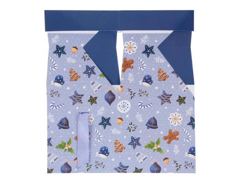 Darčeková papierová krabička s vianočným motívom. Chcete mať rýchlo a krásne zabalený darček? Tak práve pre vás máme vianočnú darčekovú krabičku, ktorá vyčarí z vášho darčeka niečo neobyčajné. Krabička je v rozloženej polohe, nezaberie miesto na skladovanie, nepokrčí sa a vďaka svojmu dizajnu je zložená jediným pohybom behom 1 sekundy. Rozmer: 120 x 120 x 150 mm Uvedená cena je za 1 ks.