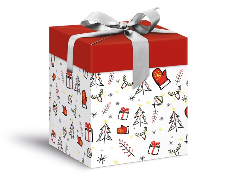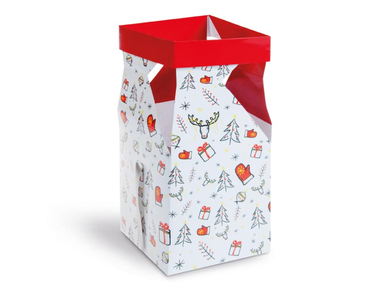 Darčeková papierová krabička s vianočným motívom. Chcete mať rýchlo a krásne zabalený darček? Tak práve pre vás máme vianočnú darčekovú krabičku, ktorá vyčarí z vášho darčeka niečo neobyčajné. Krabička je v rozloženej polohe, nezaberie miesto na skladovanie, nepokrčí sa a vďaka svojmu dizajnu je zložená jediným pohybom behom 1 sekundy. Rozmer: 120 x 120 x 150 mm Uvedená cena jeza 1 ks.