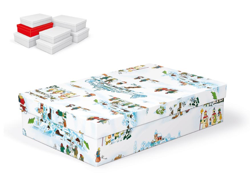 Vianočná darčeková krabička s motívmi Josefa Ladu s rozmermi 30 x 19 x 7 cm S touto krabičkou bude váš darček rýchlo a reprezentatívne zabalený. Dodávame len v súprave 7 darčekových krabíc, ktoré sú v rovnakom dizajne, ale v rôznych veľkostiach. Keď ich vložíte do košíka, ostatné škatule sa automaticky vložia, aby ste mali v košíku vždy celú, kompletnú sadu. Cena je uvedená za 1 ks. Materiál: 1,5 mm kartón potiahnutý luxusným papierom Súprava obsahuje tieto krabice: 5370755 Darčeková krabička A-V005-AL 24x16x6 cm 5370756 Darčeková krabička A-V005-BL 26x17x6 cm 5370757 Darčeková krabička A-V005-CL 28x18x7 cm 5370758 Darčeková krabička A-V005-DL 30x19x7 cm 5370759 Darčeková krabička A-V005-EL 32x20x8 cm 5370760 Darčeková krabička A-V005-FL 34x22x8 cm 5370761 Darčeková krabička A-V005-GL 36x22x9 cm