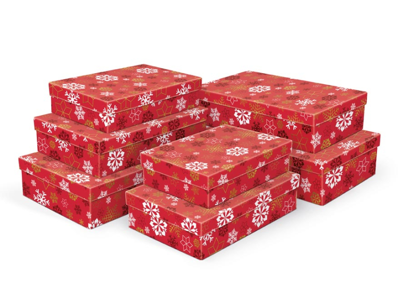 Vianočná darčeková krabička s rozmermi 26 x 17 x 6 cm Darčeková krabička s motívom snehovej vločky. Dodávame len v sade 7 darčekových krabíc, ktoré sú v rovnakom dizajne, ale v rôznych veľkostiach. Keď ich vložíte do košíka, ostatné škatule sa automaticky vložia, aby ste mali v košíku vždy celú, kompletnú sadu. Cena je uvedená za 1 ks. Materiál: 1,5 mm kartón potiahnutý luxusným papierom Súprava obsahuje tieto krabice: 5370894 Vianočná darčeková krabička A-V006-A 24x16x6 cm 5370895 Vianočná darčeková krabička A-V006-B 26x17x6 cm 5370896 Vianočná darčeková krabička A-V006-C 28x18x7 cm 5370897 Vianočná darčeková krabička A-V006-D 30x19x7 cm 5370898 Vianočná darčeková krabička A-V006-E 32x20x8 cm 5370899 Vianočná darčeková krabička A-V006-F 34x22x8 cm 5370900 Vianočná darčeková krabička A-V006-G 36x22x9 cm
