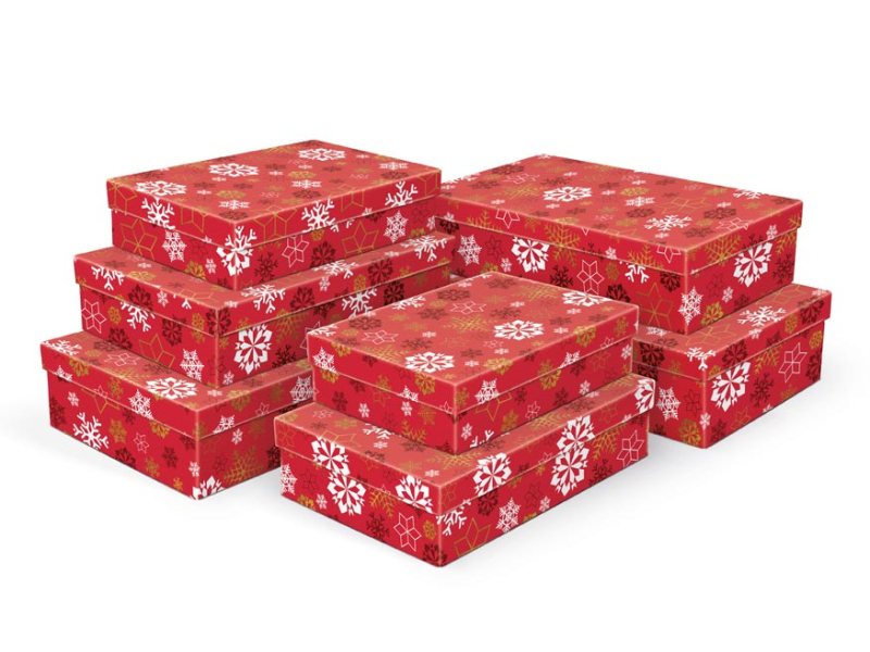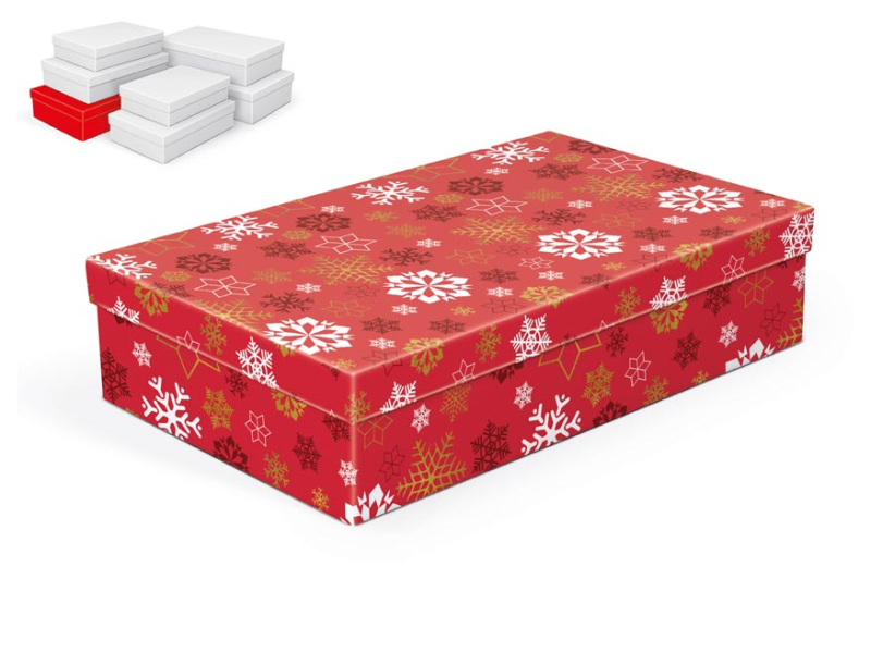 Vianočná darčeková krabička s rozmermi 34 x 22 x 8 cm Darčeková krabička s motívom snehovej vločky. Dodávame len v sade 7 darčekových krabíc, ktoré sú v rovnakom dizajne, ale v rôznych veľkostiach. Keď ich vložíte do košíka, ostatné škatule sa automaticky vložia, aby ste mali v košíku vždy celú, kompletnú sadu. Cena je uvedená za 1 ks. Materiál: 1,5 mm kartón potiahnutý luxusným papierom Súprava obsahuje tieto krabice: 5370894 Vianočná darčeková krabička A-V006-A 24x16x6 cm 5370895 Vianočná darčeková krabička A-V006-B 26x17x6 cm 5370896 Vianočná darčeková krabička A-V006-C 28x18x7 cm 5370897 Vianočná darčeková krabička A-V006-D 30x19x7 cm 5370898 Vianočná darčeková krabička A-V006-E 32x20x8 cm 5370899 Vianočná darčeková krabička A-V006-F 34x22x8 cm 5370900 Vianočná darčeková krabička A-V006-G 36x22x9 cm