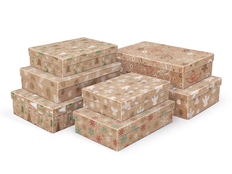 Vianočná darčeková krabička s rozmermi 26 x 17 x 6 cm NÁHODNÝ MIX MOTÍVOV Darčeková krabica s mixom vianočných motívov. Dodávame iba v sete 7 darčekových krabičiek, ktoré sú v rôznych dizajnoch a rôznych veľkostiach. Keď ich vložíte do košíka, ostatné krabičky sa automaticky vložia, aby ste mali v košíku vždy celú, kompletnú sadu. Cena je uvedená za 1 ks. Materiál: 1,5 mm kartón potiahnutý luxusným papierom Súprava obsahuje tieto krabice: 5371016 Vianočná darčeková krabička A-V009-A 24x16x6 cm 5371017 Vianočná darčeková krabička A-V009-B 26x17x6 cm 5371018 Vianočná darčeková krabička A-V009-C 28x18x7 cm 5371019 Vianočná darčeková krabička A-V009-D 30x19x7 cm 5371020 Vianočná darčeková krabička A-V009-E 32x20x8 cm 5371021 Vianočná darčeková krabička A-V009-F 34x22x8 cm 5371022 Vianočná darčeková krabička A-V009-G 36x22x9 cm