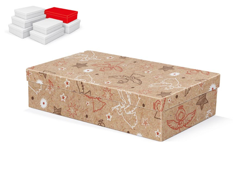 Vianočná darčeková krabička s rozmermi 32 x 20 x 8 cm NÁHODNÝ MIX MOTÍVOV Darčeková krabica s mixom vianočných motívov. Dodávame iba v sete 7 darčekových krabičiek, ktoré sú v rôznych dizajnoch a rôznych veľkostiach. Keď ich vložíte do košíka, ostatné krabičky sa automaticky vložia, aby ste mali v košíku vždy celú, kompletnú sadu. Cena je uvedená za 1 ks. Materiál: 1,5 mm kartón potiahnutý luxusným papierom Súprava obsahuje tieto krabice: 5371016 Vianočná darčeková krabička A-V009-A 24x16x6 cm 5371017 Vianočná darčeková krabička A-V009-B 26x17x6 cm 5371018 Vianočná darčeková krabička A-V009-C 28x18x7 cm 5371019 Vianočná darčeková krabička A-V009-D 30x19x7 cm 5371020 Vianočná darčeková krabička A-V009-E 32x20x8 cm 5371021 Vianočná darčeková krabička A-V009-F 34x22x8 cm 5371022 Vianočná darčeková krabička A-V009-G 36x22x9 cm