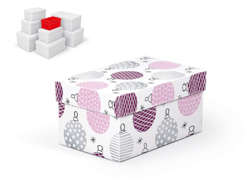 Vianočná darčeková krabička s rozmermi 16 x 10 x 8 cm Darčeková krabička s motívom vianočných ozdôb. Ideálna pre rýchle a ľahké zabalenie vianočných darčekov. Dodávame iba v sete 8 darčekových krabičiek, ktoré sú v rovnakom dizajne, ale v rôznych veľkostiach. Pri vložení do košíka sa automaticky vložia aj ostatné krabičky, tak aby ste mali v košíku vždy celý, kompletný set. Uvedená cena je za 1 ks. Materiál: 1,5 mm kartón, potiahnutý luxusným papierom Set obsahuje tieto krabice: 5370716 Krabica darčeková vianočná B-V003-A 16x10x8 cm 5370717 Krabica darčeková vianočná B-V003-B 18x11x9 cm 5370718 Krabica darčeková vianočná B-V003-C 20x12x10 cm 5370719 Krabica darčeková vianočná B-V003-D 22x14x11 cm 5370720 Krabica darčeková vianočná B-V003-E 24x16x12 cm 5370721 Krabica darčeková vianočná B-V003-F 26x17x13 cm 5370722 Krabica darčeková vianočná B-V003-G 28x18x14 cm 5370723 Krabica darčeková vianočná B-V003-H 30x19x15 cm