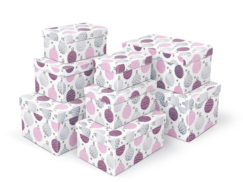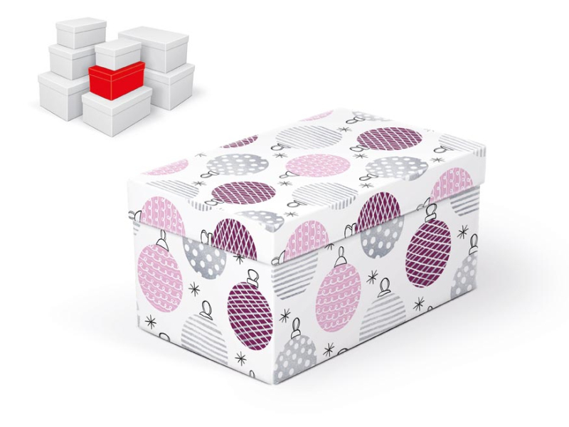 Vianočná darčeková krabička s rozmermi 20 x 12 x 10 cm Darčeková krabička s motívom vianočných ozdôb. Ideálna pre rýchle a ľahké zabalenie vianočných darčekov. Dodávame iba v sete 8 darčekových krabičiek, ktoré sú v rovnakom dizajne, ale v rôznych veľkostiach. Pri vložení do košíka sa automaticky vložia aj ostatné krabičky, tak aby ste mali v košíku vždy celý, kompletný set. Uvedená cena je za 1 ks. Materiál: 1,5 mm kartón, potiahnutý luxusným papierom Set obsahuje tieto krabice: 5370716 Krabica darčeková vianočná B-V003-A 16x10x8 cm 5370717 Krabica darčeková vianočná B-V003-B 18x11x9 cm 5370718 Krabica darčeková vianočná B-V003-C 20x12x10 cm 5370719 Krabica darčeková vianočná B-V003-D 22x14x11 cm 5370720 Krabica darčeková vianočná B-V003-E 24x16x12 cm 5370721 Krabica darčeková vianočná B-V003-F 26x17x13 cm 5370722 Krabica darčeková vianočná B-V003-G 28x18x14 cm 5370723 Krabica darčeková vianočná B-V003-H 30x19x15 cm