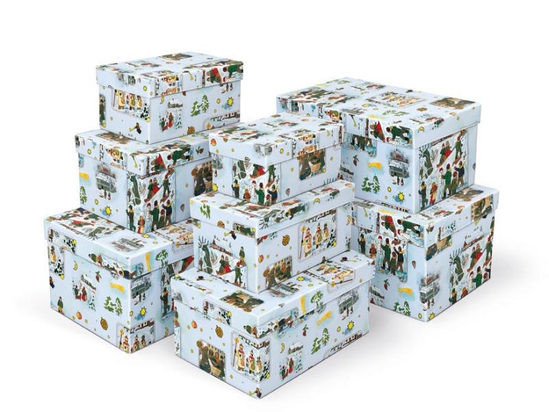 Vianočná darčeková krabička s motívmi Josefa Ladu s rozmermi 20 x 12 x 10 cm Vytvorte si doma atmosféru klasických slovenských Vianoc. Dodávame iba v sete 8 darčekových krabičiek, ktoré sú v rovnakom dizajne, ale v rôznych veľkostiach. Pri vložení do košíka sa automaticky vložia aj ostatné krabičky, tak aby ste mali v košíku vždy celý, kompletný set. Uvedená cena je za 1 ks. Materiál: 1,5 mm kartón, potiahnutý luxusným papierom Set obsahuje tieto krabice: 5370762 Krabica darčeková vianočná B-V005-AL 16x10x8 cm 5370763 Krabica darčeková vianočná B-V005-BL 18x11x9 cm 5370764 Krabica darčeková vianočná B-V005-CL 20x12x10 cm 5370765 Krabica darčeková vianočná B-V005-DL 22x14x11 cm 5370766 Krabica darčeková vianočná B-V005-EL 24x16x12 cm 5370767 Krabica darčeková vianočná B-V005-FL 26x17x13 cm 5370768 Krabica darčeková vianočná B-V005-GL 28x18x14 cm 5370769 Krabica darčeková vianočná B-V005-HL 30x19x15 cm
