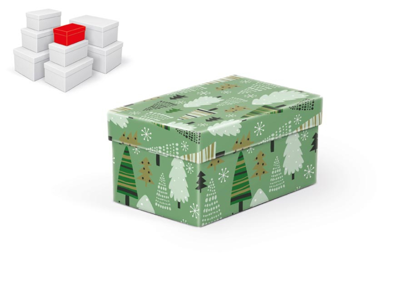 Vianočná darčeková krabička s rozmermi 15 x 10 x 8 cm Darčeková krabička s motívom vianočných stromčekov a vločiek. Dodávame len v súpravách 8 darčekových krabíc, ktoré sú v rovnakom dizajne ale v rôznych veľkostiach. Pri vložení do košíka sa automaticky vložia i ostatné krabice tak, aby ste mali v koši vždy celú, komletnú súpravu. Uvedená cena je za 1 ks. Materiál: 1,5mm kartón potiahnutý luxusným papierom Súprava obsahuje tieto krabice: 5370915 Krabica darčeková vianočná B-V006-A 16x10x8 cm 5370916 Krabica darčeková vianočná B-V006-B 18x11x9 cm 5370917 Krabica darčeková vianočná B-V006-C 20x12x10 cm 5370918 Krabica darčeková vianočná B-V006-D 22x14x11 cm 5370919 Krabica darčeková vianočná B-V006-E 24x16x12 cm 5370920 Krabica darčeková vianočná B-V006-F 26x17x13 cm 5370921 Krabica darčeková vianočná B-V006-G 28x18x14 cm 5370922 Krabica darčeková vianočná B-V006-H 30x19x15 cm