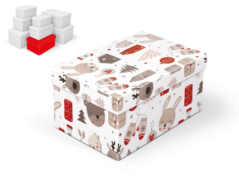 Vianočná darčeková krabička s rozmermi 24 x 16 x 12 cm Darčeková krabička s vianočnými motívmy. S touto krabicou bude Váš darček rýchlo a reprezentatívne zabalený. Dodávame len v súprave 8 darčekových krabičiek, ktoré sú v rovnakom dizajne, ale v rôznych veľkosiach. Pri vložení do košíka sa automaticky vložia i ostatné krabičky tak, aby ste mali v košíku vždy celú, kompletnú súpravu. Uvedená cena je za 1 ks. Materiál: 1,5 mm kartón potiahnutý luxusným papierom Súprava obsahuje tieto krabice: 5370923 Krabica darčeková vianočná B-V007-A 16x10x8 cm 5370924 Krabica darčeková vianočná B-V007-B 18x11x9 cm 5370925 Krabica darčeková vianočná B-V007-C 20x12x10 cm 5370926 Krabica darčeková vianočná B-V007-D 22x14x11 cm 5370927 Krabica darčeková vianočná B-V007-E 24x16x12 cm 5370928 Krabica darčeková vianočná B-V007-F 26x17x13 cm 5370929 Krabica darčeková vianočná B-V007-G 28x18x14 cm 5370930 Krabica darčeková vianočná B-V007-H 30x19x15 cm