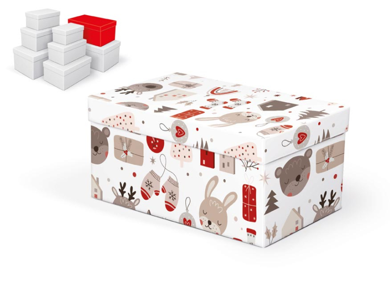 Vianočná darčeková krabička s rozmermi 26 x 17 x 13 cm Darčeková krabička s vianočnými motívmy. S touto krabicou bude Váš darček rýchlo a reprezentatívne zabalený. Dodávame len v súprave 8 darčeklových krabičiek, ktré sú v rovnakom dizajne, ale v rôznych veľkostiach. Pri vložení do košíka sa automatiky vložia aj ostatné krabičky tak, aby ste mali v košíku vždy celú, kompletnú súpravu. Uvedená cena je za 1 ks. Materiál: 1,5 mm kartón potiahnutý luxusným papierom Súprava obsahuje tieto krabice: 5370923 Krabica darčeková vianočná B-V007-A 16x10x8 cm 5370924 Krabica darčeková vianočná B-V007-B 18x11x9 cm 5370925 Krabica darčeková vianočná B-V007-C 20x12x10 cm 5370926 Krabica darčeková vianočná B-V007-D 22x14x11 cm 5370927 Krabica darčeková vianočná B-V007-E 24x16x12 cm 5370928 Krabica darčeková vianočná B-V007-F 26x17x13 cm 5370929 Krabica darčeková vianočná B-V007-G 28x18x14 cm 5370930 Krabica darčeková vianočná B-V007-H 30x19x15 cm