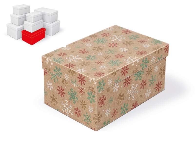 Vianočná darčeková krabička s rozmermi 24 x 16 x 12 cm NÁHODNÝ MIX MOTÍVOV Darčeková krabička s mixom vianočných motívov. Dodávame len v sade 8 darčekových krabíc, ktoré sú v rôznych dizajnoch a rôznych veľkostiach. Keď ich vložíte do košíka, ostatné krabičky sa automaticky vložia, aby ste mali v košíku vždy celú, kompletnú sadu. Cena je uvedená za 1 ks. Materiál: 1,5 mm kartón, potiahnutý papierom s potlačou Súprava obsahuje tieto krabice: 5371030 Darčeková krabička B-V008-A 16x10x8 cm 5371031 Darčeková krabička B-V008-B 18x11x9 cm 5371032 Darčeková krabička B-V008-C 20x12x10 cm 5371033 Darčeková krabička B-V008-D 22x14x11 cm 5371034 Darčeková krabička B-V008-E 24x16x12 cm 5371035 Darčeková krabička B-V008-F 26x17x13 cm 5371036 Darčeková krabička B-V008-G 28x18x14 cm 5371037 Darčeková krabička B-V008-H 30x19x15 cm