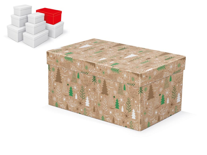 Vianočná darčeková krabička s rozmermi 26 x 17 x 13 cm NÁHODNÝ MIX MOTÍVOV Darčeková krabička s mixom vianočných motívov. Dodávame len v sade 8 darčekových krabíc, ktoré sú v rôznych dizajnoch a rôznych veľkostiach. Keď ich vložíte do košíka, ostatné krabičky sa automaticky vložia, aby ste mali v košíku vždy celú, kompletnú sadu. Cena je uvedená za 1 ks. Materiál: 1,5 mm kartón, potiahnutý papierom s potlačou Sada obsahuje tieto krabice: 5371030 Darčeková krabička B-V008-A 16x10x8 cm 5371031 Darčeková krabička B-V008-B 18x11x9 cm 5371032 Darčeková krabička B-V008-C 20x12x10 cm 5371033 Darčeková krabička B-V008-D 22x14x11 cm 5371034 Darčeková krabička B-V008-E 24x16x12 cm 5371035 Darčeková krabička B-V008-F 26x17x13 cm 5371036 Darčeková krabička B-V008-G 28x18x14 cm 5371037 Darčeková krabička B-V008-H 30x19x15 cm