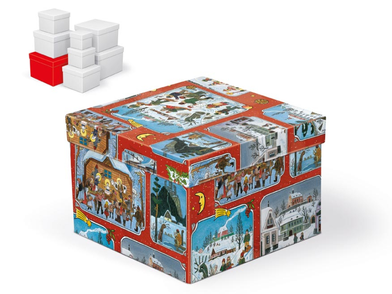 Vianočná darčeková krabička s motívmi Josefa Ladu s rozmermi 20 x 20 x 14 cm Dodávame len v súprave 8 darčekových krabičiek, ktoré sú v rovnakom dizajne, ale v rôznych veľkostiach. Keď ich vložíte do košíka, ostatné škatule sa automaticky vložia, takže v košíku budete mať vždy celú, kompletnú sadu. Cena je uvedená za 1 ks. Materiál: 1,5 mm kartón potiahnutý luxusným papierom Súprava obsahuje tieto krabice: 5370770 Vianočná darčeková krabička C-V005-AL 8x8x8 cm 5370771 Vianočná darčeková krabička C-V005-BL 10x10x9 cm 5370772 Vianočná darčeková krabička C-V005-CL 12x12x10 cm 5370773 Vianočná darčeková krabička C-V005-DL 14x14x11 cm 5370774 Vianočná darčeková krabička C-V005-EL 16x16x12 cm 5370775 Vianočná darčeková krabička C-V005-FL 18x18x13 cm 5370776 Vianočná darčeková krabička C-V005-GL 20x20x14 cm 5370777 Vianočná darčeková krabička C-V005-HL 22x22x15 cm