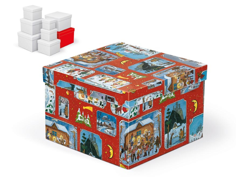 Vianočná darčeková krabička s motívmi Josefa Ladu s rozmermi 22 x 22 x 15 cm Dodávame len v súprave 8 darčekových krabičiek, ktoré sú v rovnakom dizajne, ale v rôznych veľkostiach. Keď ich vložíte do košíka, ostatné škatule sa automaticky vložia, takže v košíku budete mať vždy celú, kompletnú sadu. Cena je uvedená za 1 ks. Materiál: 1,5 mm kartón potiahnutý luxusným papierom Súprava obsahuje tieto krabice: 5370770 Vianočná darčeková krabička C-V005-AL 8x8x8 cm 5370771 Vianočná darčeková krabička C-V005-BL 10x10x9 cm 5370772 Vianočná darčeková krabička C-V005-CL 12x12x10 cm 5370773 Vianočná darčeková krabička C-V005-DL 14x14x11 cm 5370774 Vianočná darčeková krabička C-V005-EL 16x16x12 cm 5370775 Vianočná darčeková krabička C-V005-FL 18x18x13 cm 5370776 Vianočná darčeková krabička C-V005-GL 20x20x14 cm 5370777 Vianočná darčeková krabička C-V005-HL 22x22x15 cm