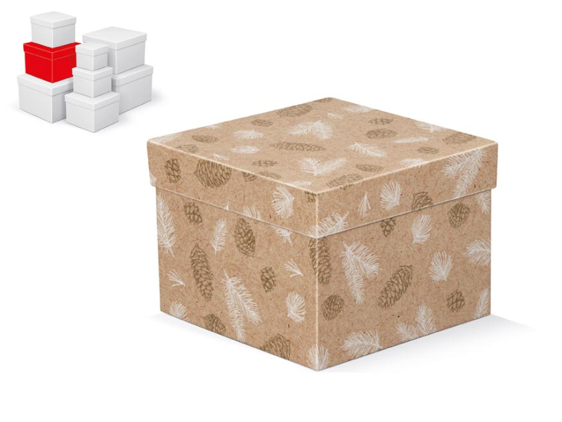 Vianočná darčeková krabička s rozmermi 16 x 16 x 12 cm NÁHODNÝ MIX MOTÍVOV Darčeková krabička s mixom vianočných motívov. Dodávame len v sade 8 darčekových krabíc, ktoré sú v rôznych dizajnoch a rôznych veľkostiach. Keď ich vložíte do košíka, ostatné krabičky sa automaticky vložia, aby ste mali v košíku vždy celú, kompletnú sadu. Cena je uvedená za 1 ks. Materiál: 1,5 mm kartón, potiahnutý papierom s potlačou Súprava obsahuje tieto krabice: 5371046 Darčeková krabička C-V008-A 8x8x8 cm 5371047 Darčeková krabička C-V008-B 10x10x9 cm 5371048 Darčeková krabička C-V008-C 12x12x10 cm 5371049 Darčeková krabička C-V008-D 14x14x11 cm 5371050 Darčeková krabička C-V008-E 16x16x12 cm 5371051 Darčeková krabička C-V008-F 18x18x13 cm 5371052 Darčeková krabička C-V008-G 20x20x14 cm 5371053 Darčeková krabička C-V008-H 22x22x15 cm