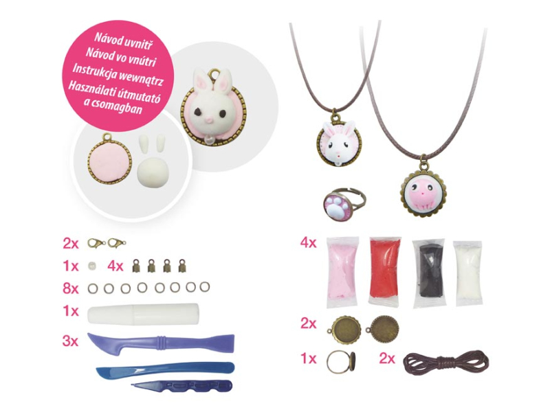 Kreatívny set – náhrdelníky BALENIE OBSAHUJE: - 4 x farebná hmota - 2 x šnúrka - 2 x prívesok - 1 x prsteň - 1 x lepidlo - 8 x krúžok - 2 x sponka - 3 x nástroj - 4 x spojka - 1 x perlový korál - 1 x návod na použitie VAROVANIE: Nevhodné pre deti do 3 rokov. Obsahuje malé časti. Hrozí nebezpečenstvo udusenia. Uvedená cena je za 1 balenie.