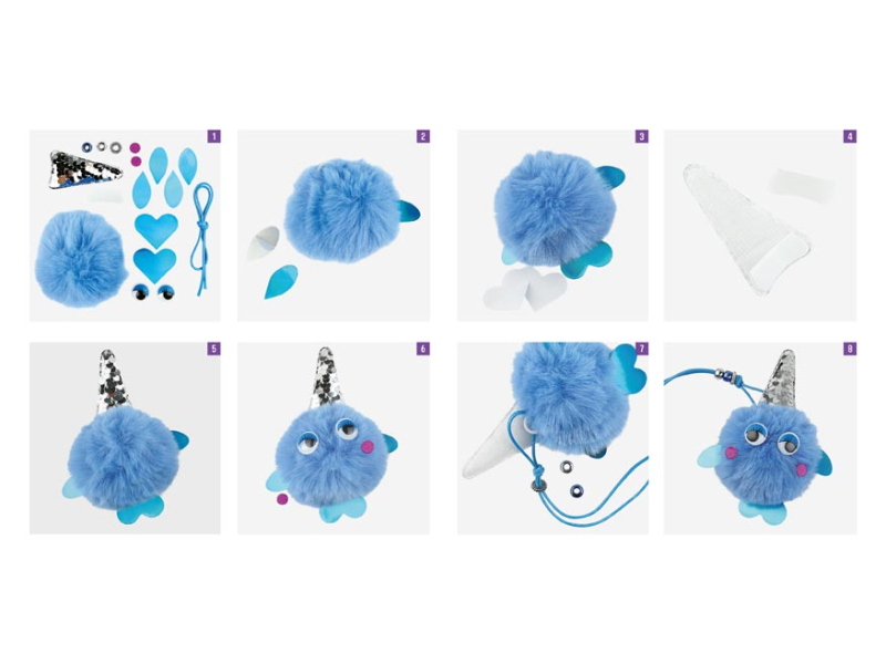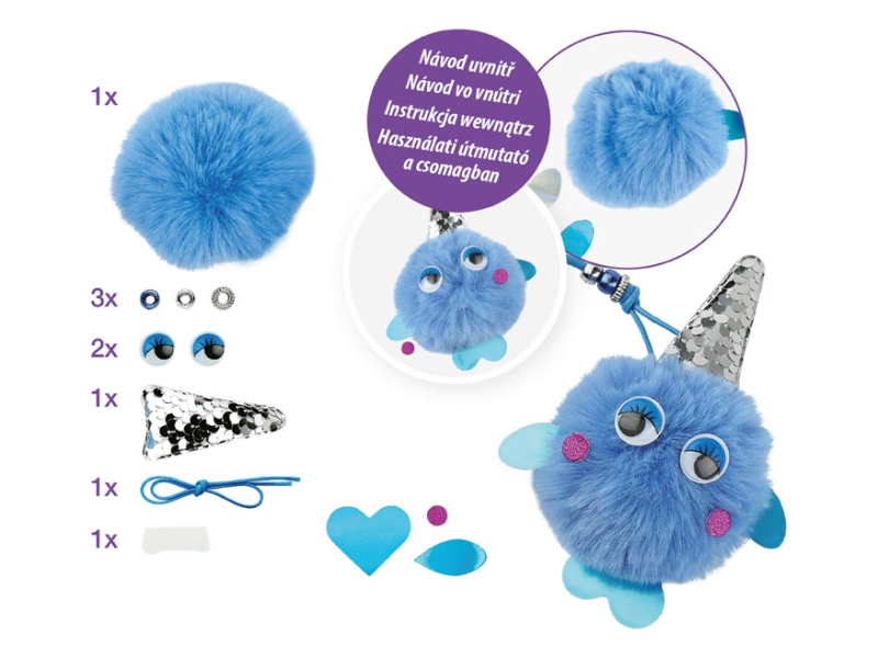 Kreatívny set – prívesok modrý BALENIE OBSAHUJE: - 1 x pom pom - 3 x koralky - 2 x samolepiace oči - 1 x bavlnená šnúrka - 1 x polstrovaný (čalúnený) roh - 4 x samolepka - 1 x návod na použitie VAROVANIE: Nevhodné pre deti do 3 rokov. Obsahuje malé časti, hrozí nebezpečenstvo udusenia. Uvedená cena je za 1 balenie.