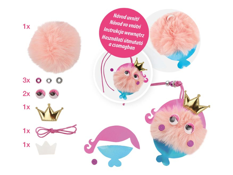 Kreatívny set – prívesok princezná BALENIE OBSAHUJE: - 1 x pom pom - 3 x koráliky - 2 x samolepiace oči - 1 x bavlnená šnúrka - 1 x čalúnená korunka - 4 x samolepka - 1 x návod na použitie VAROVANIE: Nevhodné pre deti do 3 rokov. Obsahuje malé časti, hrozí nebezpečenstvo udusenia. Uvedená cena je za 1 balenie.