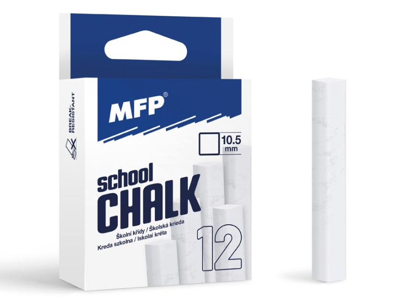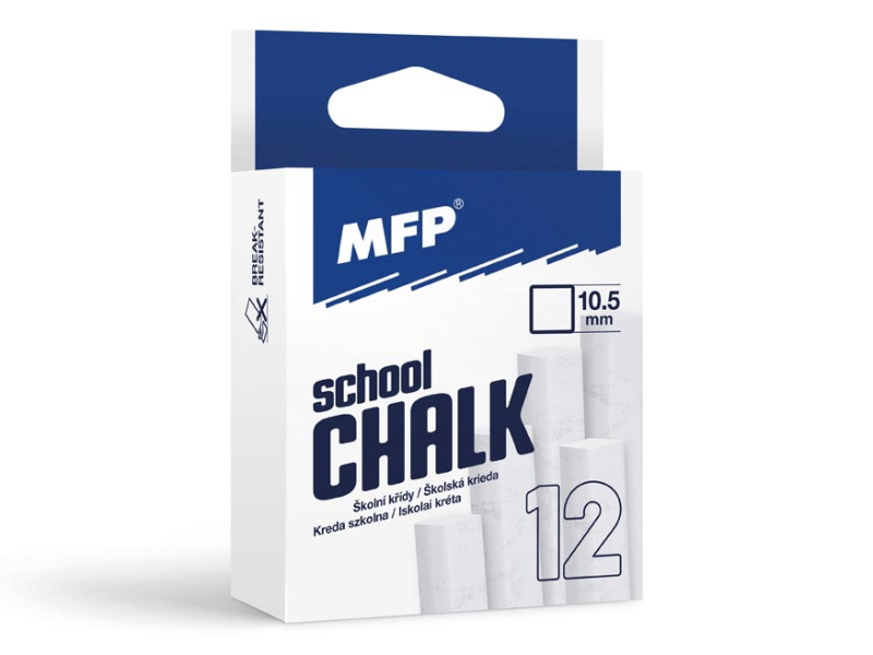 Štvorhranná školská krieda neprášivá, biela. Učená na písanie na školskej tabuli, ale aj na písanie na chodník či múriky. Kriedy sú vysoko odolné voči zlomeniu a zaisťujú hladké písanie pri použití na tabuliach. Kriedy sú uložené v papierovej krabičke s eurozávesom. Uvedená cena je za 1 balenie, v ktorom sa nachádza 12 ks bielych kried.