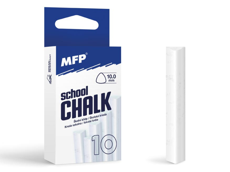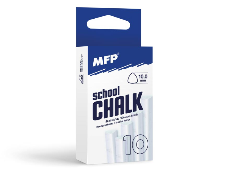 Trojhranná školská krieda neprašná, biela. Určená na písanie na školskú tabuľu, ale aj na chodník či na stenu. Kriedy sú vysoko odolné proti zlomeniu a zabezpečujú hladké písanie na školské tabule. Kriedy sú uložené v papierovej škatuli s euro-závesom. Uvedená cena je za 1 balenie, v ktorom je 10 ks bielych kried.