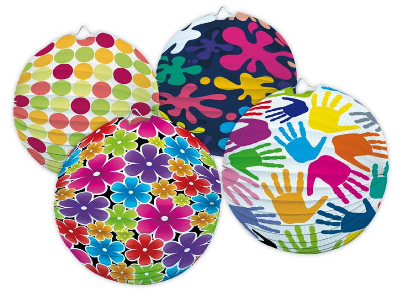 Papierový okrúhly lampión farebný s obrázkami. Vhodná dekorácia na párty, lampiónový sprievod, záhradná slávnosť, karneval, oslavu narodenín alebo len tak na zavesenie do detskej izbičky. Vyberte si svoj lampión a urobte z bežného večera kúzelný. Lampión je bez prútika a svetielka. Lampión má pútko na zavesenie. Materiál: papier, kov Priemer lampiónu: 25 cm Motívy: ruky, kvety, bodky, škvrny Dodávame v mixe po 4 ks podľa skladovej zásoby. Uvedená cena je za 1 ks.