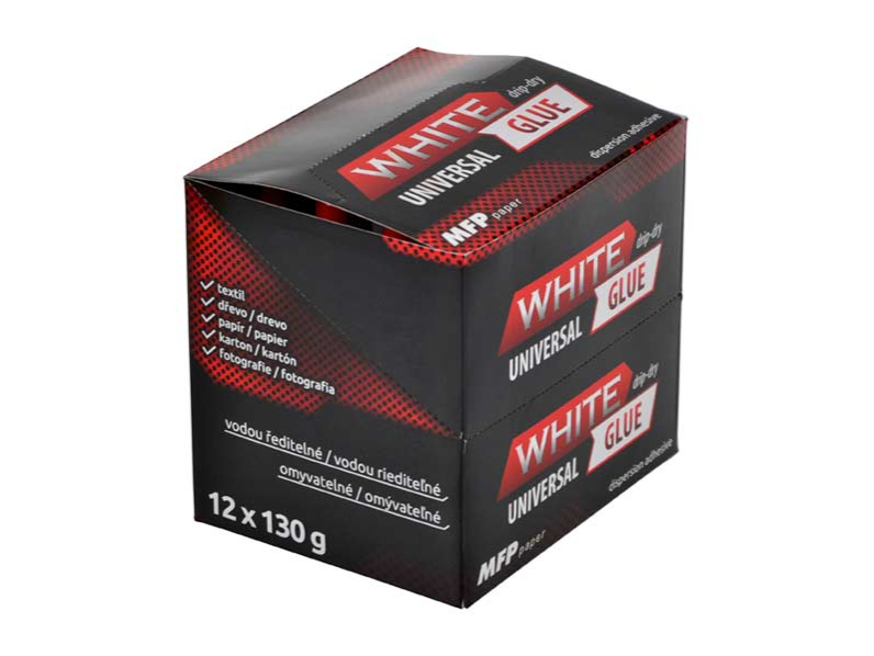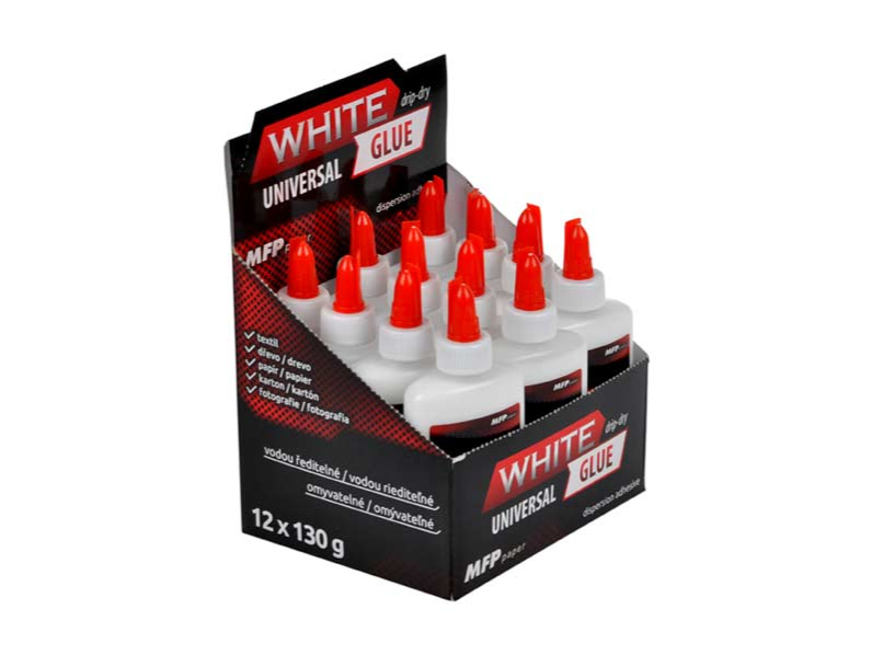 Disperzné biele lepidlo na papier, kartón, textil, fotografie, drevo, kožu, koženku a korok. Vďaka unikátnemu uzáveru Twist môže zvoliť ľubovoľné dávkovanie lepidla. Na špičke lepidla je malý hrebienok ktorý lepidlo rovnomerne rozotrie po ploche. NÁVOD: Lepidlo naneste v tenkej vrstve iba na jednu z lepených plôch. Spájané plochy musia byť vždy čisté, suché a odmastené. Hmotnosť: 130g Balené v papierovej krabici po 12 ks. Uvedená cena je za 1 ks.