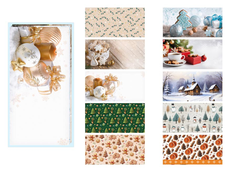 Celoplošné potlačené celoročné dopisné obálky DL s krycou páskou. Radi posielate vianočné listy? A káno, tak si kúpte u nás krásne listové obálky s vánočným motívom a nezabudnite si u nás tiež objednať listové papier a pero! Na výber je z 10 rôznych vánočných motívov. Uvedená cena je za 1 ks.