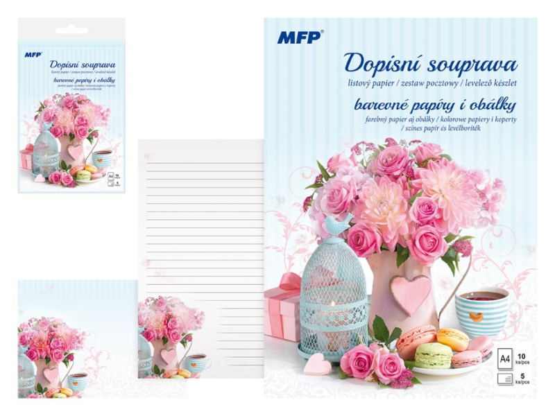 Listová súprava - KVETY – Radi píšete listy svojim známym? Zakúpte si u nás krásny listový papier s rôznymi motívmi a nezabudnite ani na písacie potreby. BALENIE OBSAHUJE: -10 potlačených listových papierov formátu A4 -5 farebných poštových obálok FORMÁT: A4 PRODUKCIA: linajková Uvedená cena je za 1 balenie. Dodávame v nádhernej papierovej škatuľke. K dokonalosti je všetko balené v priehľadnom obale so závesom.