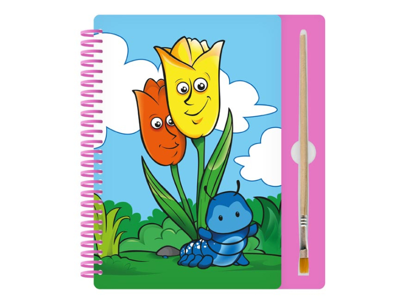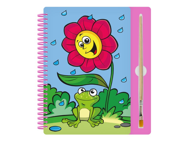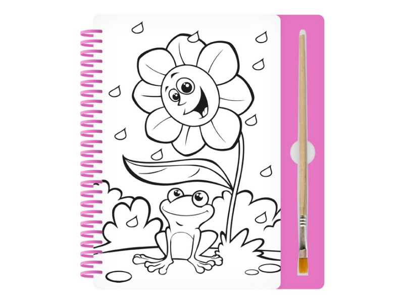Maľovanie vodou vo forme knihy. Urobte si pohodové popoludnie s deťmi a vymaľujte si obrázok. NÁVOD: 1. Namočte štetec do téglika s čistou vodou 2. Maľuj po bielej ploche a akoby kúzlom sa objaví pestrofarebný obrázok. 3. Po zaschnutí farieb opäť zmizne obraz a môžeš ho maľovať ešte raz. VAROVANIE: Nevhodné pre deti do 3 rokov. Nebezpečenstvo udusenia. Malé časti. Uvedená cena je za 1 ks.