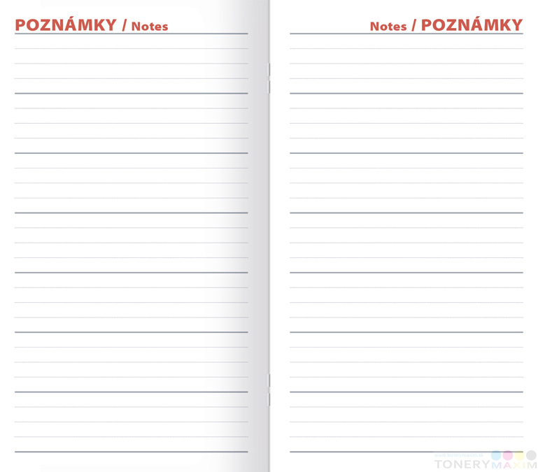 Vreckový, či kabelkový diár s prehľadným týždňom na každej strane. Obsahuje slovenské a české kalendárium, prehľadný aj plánovací kalendár, informácie o školských prázdninách. Nájdete v ňom priestor pre písanie poznámok a pripomienok, adresár či informácie o štátnych sviatkoch susediacich krajín EÚ.