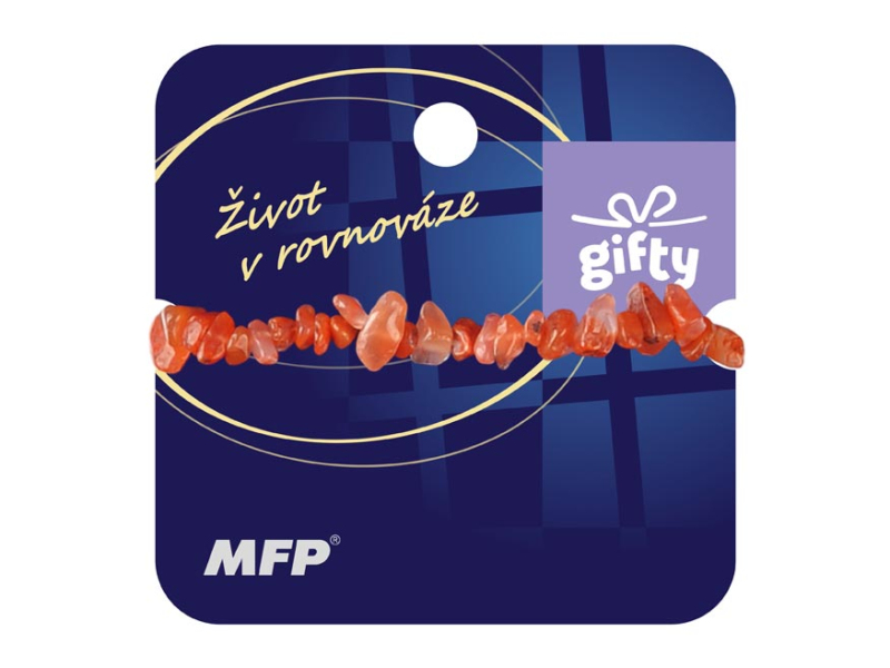 Náramok Život v rovnováhe z rady Sentiment RAW, ktorá je súčasťou kolekcie Gifty, je originálny šperk vyrobený z nepravidelných kúskov karneolu. Jeho výrazné oranžovočervené tóny symbolizujú energiu a radosť, vďaka čomu náramok prináša nositeľovi silu a optimizmus. Tento náramok je ideálnym talizmanom pre znamenia Barana, Leva a Panny, ktorých energia prirodzene rezonuje s vlastnosťami karneolu. Vďaka pružnej gumičke sa náramok ľahko prispôsobí väčšine veľkostí zápästia. Priemer korálky: 8 mm Prírodný kameň: karneol Farba: oranžovočervená UPOZORNENIE: Farba sa môže mierne líšiť v závislosti od prirodzených vlastností kameňa. Uvedená cena je za 1 ks.