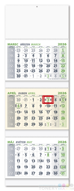 Nástenný kalendár 3-ŠPIRÁLOVÝ 2026 - Biely