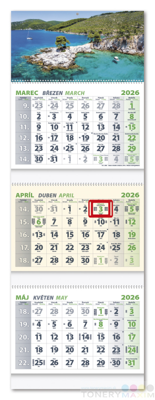 Nástenný kalendár 3-ŠPIRÁLOVÝ 2026 - Pobrežie