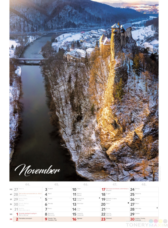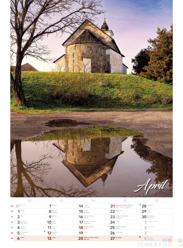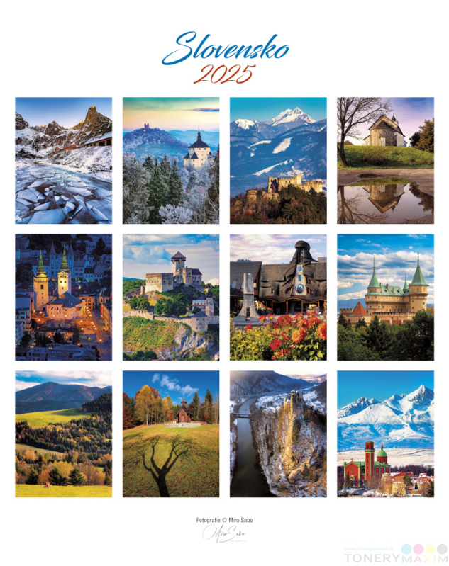 Elegantný nástenný kalendár približuje krásu a jedinečnosť slovenskej krajiny. Kalendár má mesačné kalendárium a slovenské mená, štátne sviatky a fázy Mesiaca.