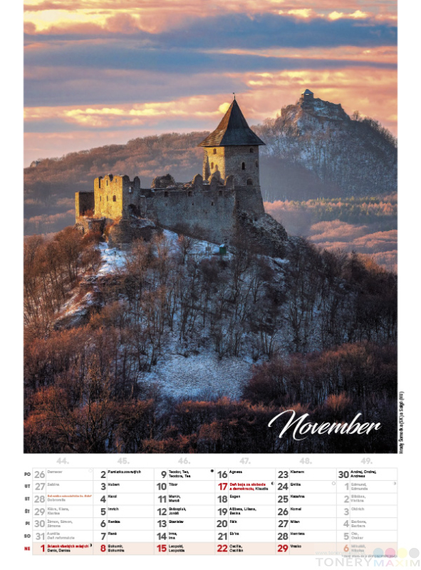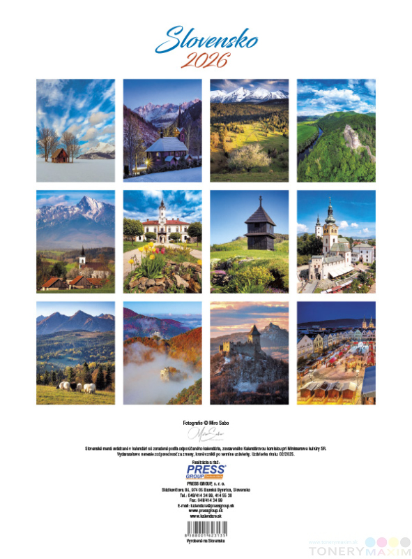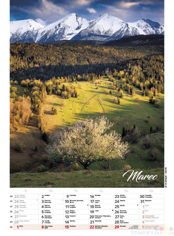 Elegantný nástenný kalendár približuje krásu a jedinečnosť slovenskej krajiny. Kalendár má mesačné kalendárium a slovenské mená, štátne sviatky a fázy Mesiaca.