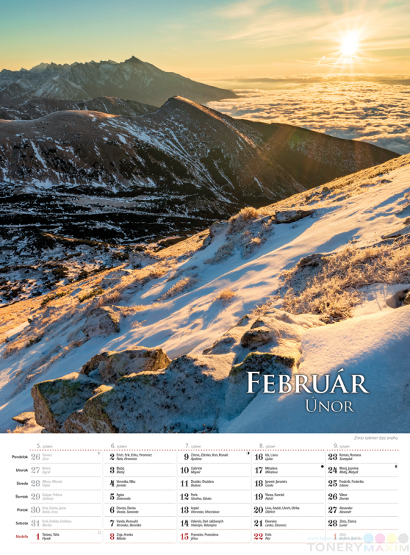 Krása našich veľhôr je zachytená v tatranských impresiách. Odhaľte všetky doteraz nepoznané podoby majestátnych Tatier v mesačnom nástennom kalendári so slovenskými a českými menami a štátnymi sviatkami oboch krajín.