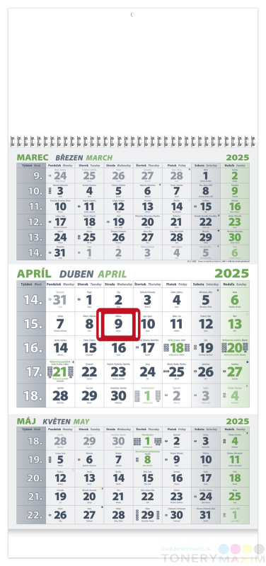 Nástenný kalendár TROJMESAČNÝ 2025 - Biely