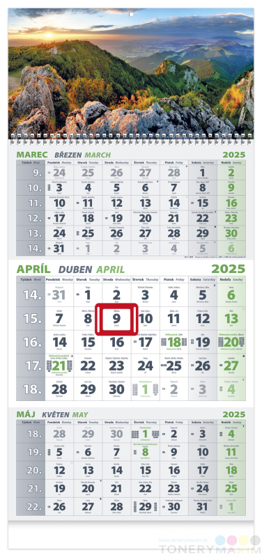 Nástenný kalendár TROJMESAČNÝ 2025 - Hory