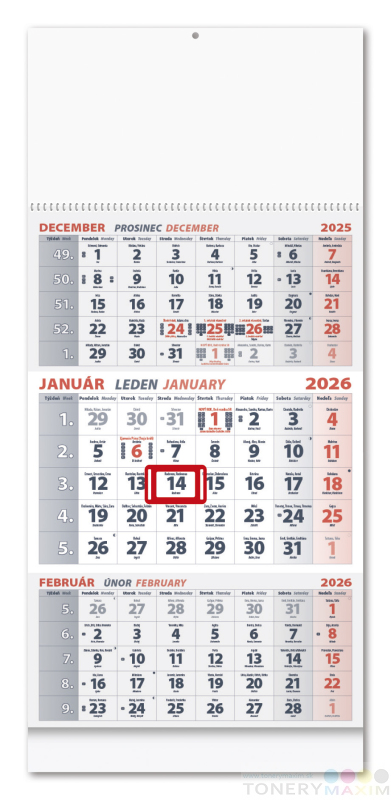 Nástenný kalendár TROJMESAČNÝ 2026 - Biely